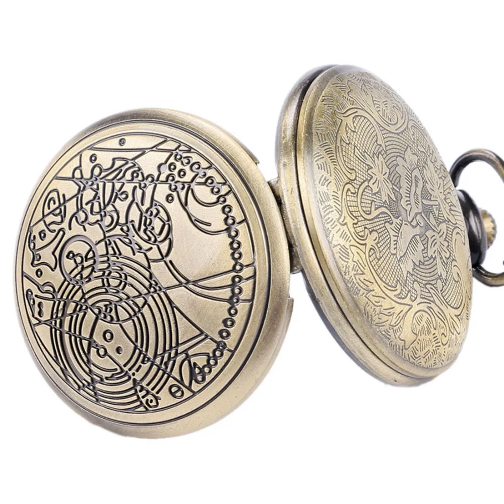 Bronze Color Doctor Who Theme Antique Pocket Watch With Dr. Who Symbols Design Glass Dome Pendant Packing With Gift Box