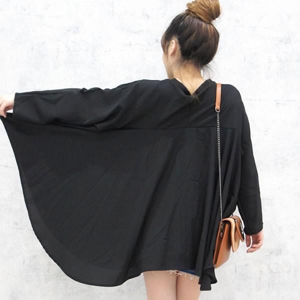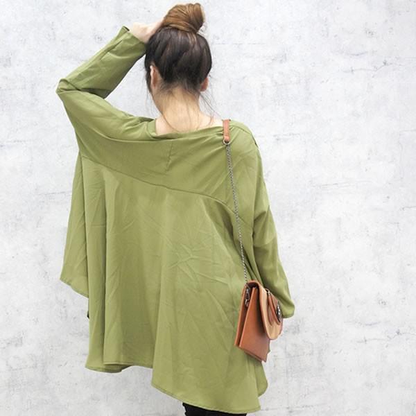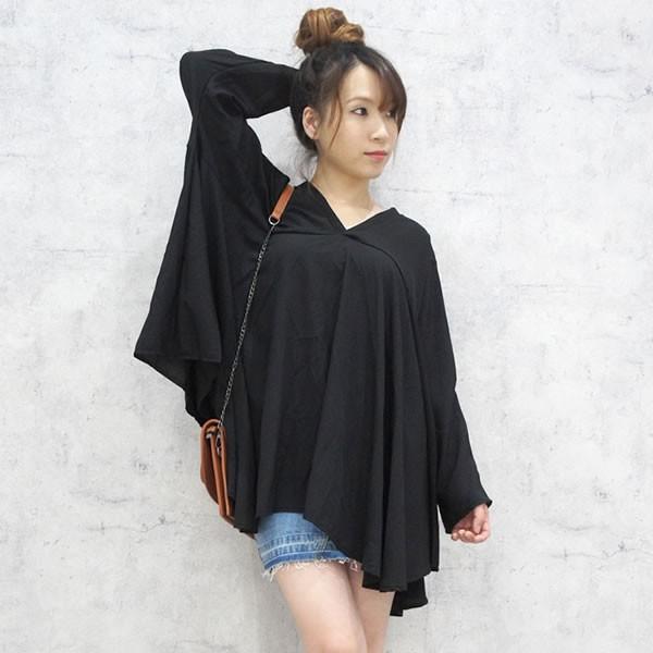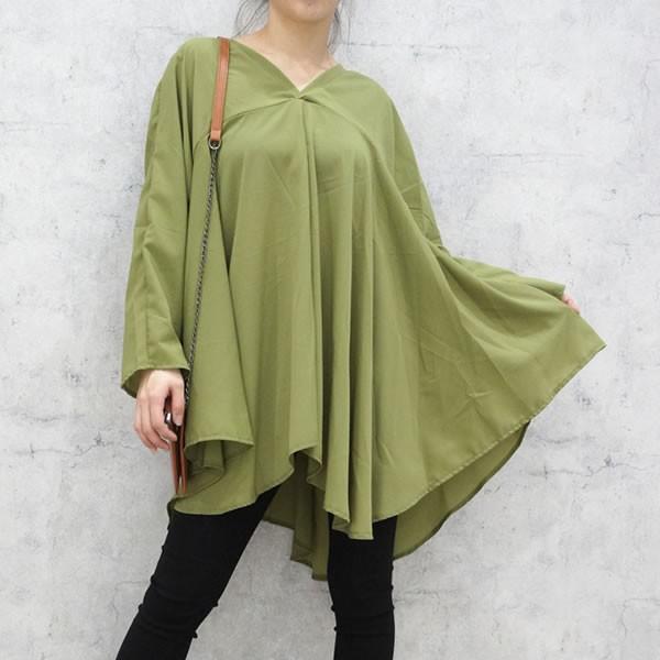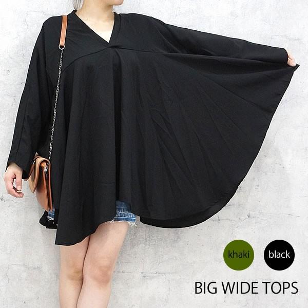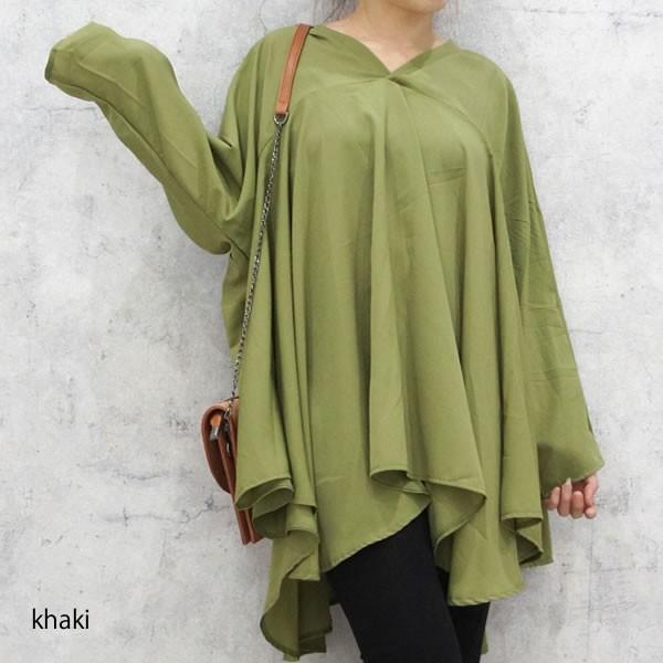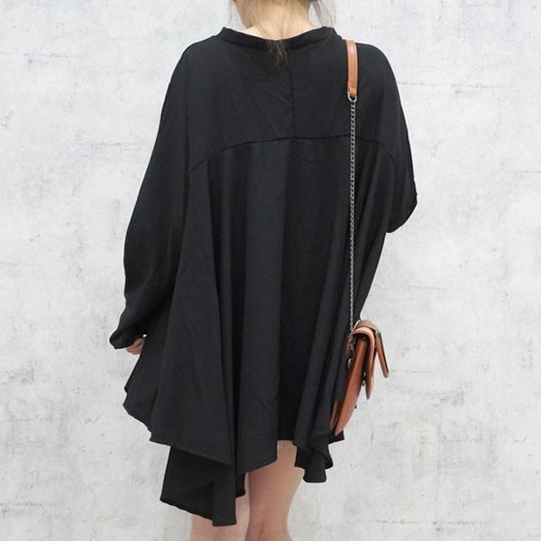 | Vネック アシンメトリー 裾フレア ワイド カットソー トップス ブラウス 長袖 黒 ブラック カーキ 無地 【裾フレア ブラウス トップス レディース 女性 黒 black 肌見せ デザイン vネック チュニック丈 カットソー スキッパー カットソー】 | |