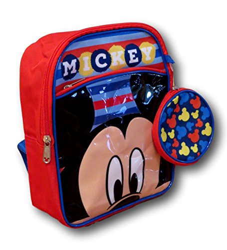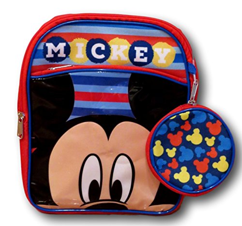 This 10 inch Mickey mouse mini backpack will store your little one's essentials. Zippered compartments will keep your belongings safe. Shoulder straps are adjustable for comfort. Comes with bonus coin purse!Feature