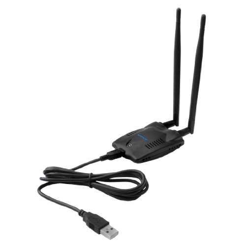 -. Feature : 3X Performance (compare to a standard 2dbi antenna) 3X Distance (compare to a standard 2dbi antenna) 4X Signal Reception / Operating distance of up to 1500 meters High power output technology Detachable smart MIMO Antenna for long-range connectivity / WMM (Wi-Fi Multimedia) function support Dual 5dBi swivel Omni-directional high gain antenna NDS and PSP X-link support Wi-Fi Direct support / USB extension cable 256-bit WEP security WPA, WPA-PSK, WPA2, WPA2-PSK Design for indoor usage / Chipset: Ralink RT3070 Antenna Type: RP-SMA Male / Operating System: Win 2000/XP/x64/Vista/7/8 Mac OSX 10.6/10.7/10.8 Linux Kernel 2.6.6 and after (Support BackTrack 3, 4) / Dimension: Antenna length: 6.75 inches USB Adapter: 3.5x 2.9 x 0.9 inches USB Cable: 15ft