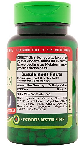ReleaseDate : 2015-06-11 Studio : Piping Rock Health Products Publisher : Piping Rock Health Products Binding : Health and Beauty Product Description Melatonin is a hormone that helps maintain the body's circadian rhythm and promotes optimal rest and relaxation. It encourages a calm mood and assists in improving the quality of rest. Nature's Truth Melatonin 3 mg comes in gluten free, fast dissolving tabs for optimal absorption. 0