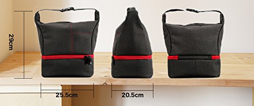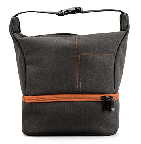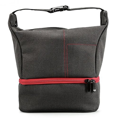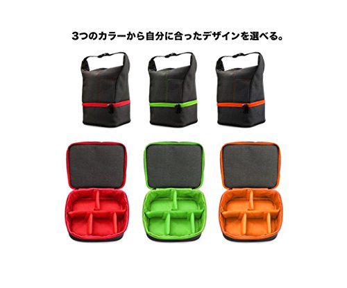-. Feature : 上部にカメラ本体、下部にレンズや小物を収納できるカメラ用ショルダーバッグ / 付属のショルダーストラップを外せば手提げバッグとしても使えます / ナイロン素材で防水性が高いタイプ / 下部レンズ入れの仕切りはマジックテープでカスタマイズ可能 / チャコール+レッド、オレンジ、グリーンの3色