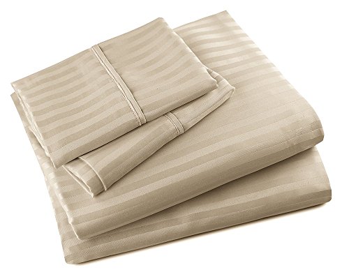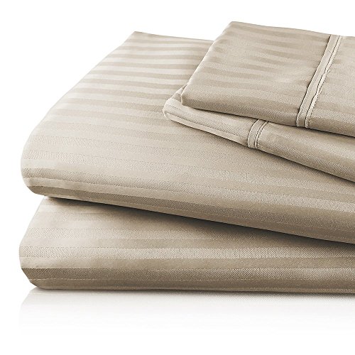 Luxor Linens Bed Sheet Set - Empire Line - Luxurious Hotel Quality Extra Soft & Wrinkle Resistant Empire Embossed Dobby Stripe 90GSM Microfiber 4-Piece Sheet Set - Available in Various Sizes & Colors