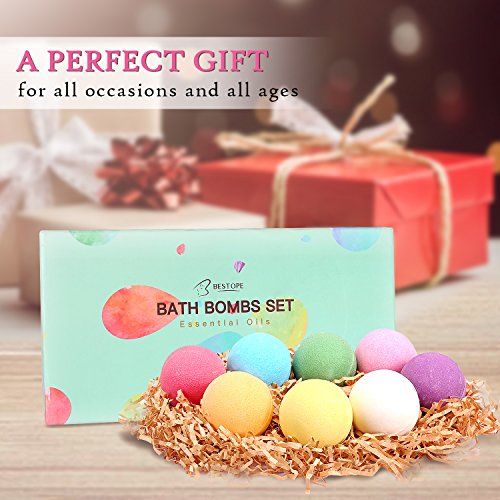 BESTOPE Bath Bombs Gift Set, 8 x 3.5 oz Vegan Natural Essential Oil & Lush Fizzy and Spa Bubble Bath Moisturizes Dry Skin, Luxury Gift for Valentine, Women, Mom, Teen Girl, Birthdays