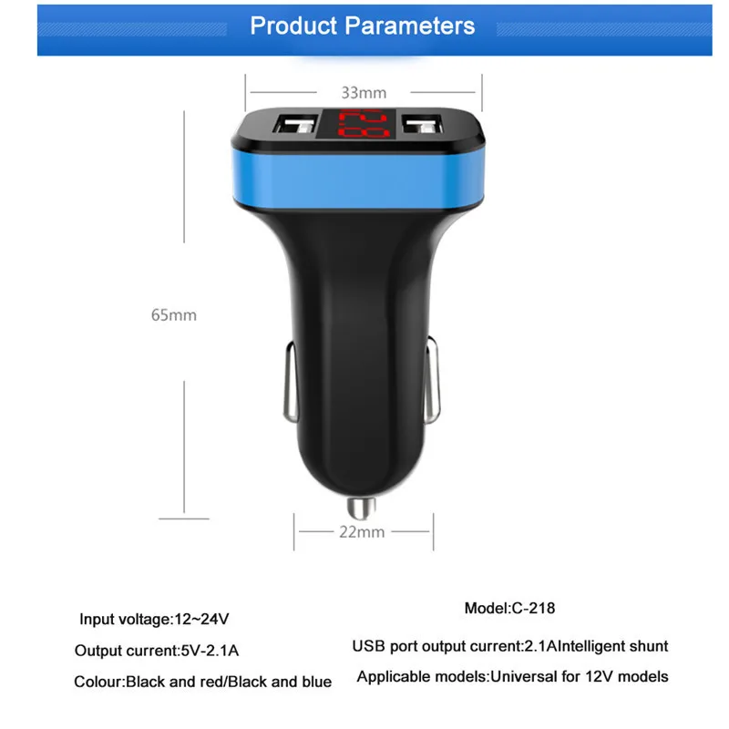 Product Name:Double USB car charger with display