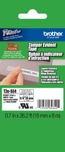 Brother TZeSE4 Laminated Black on White Tamper Evident .75 inch Tape - Retail Packaging