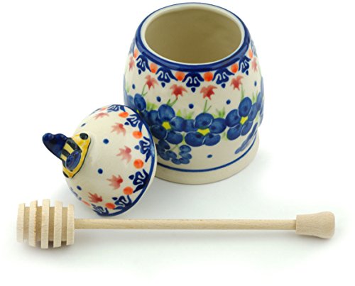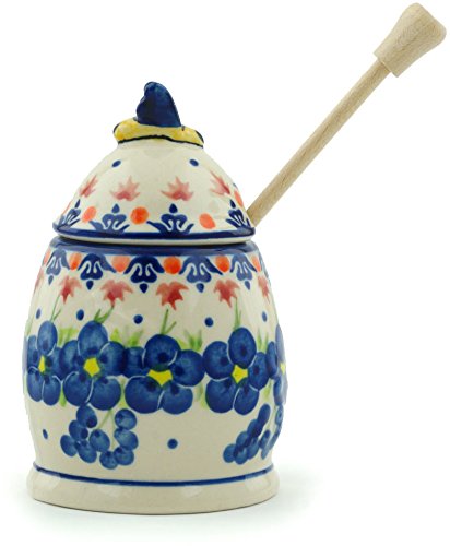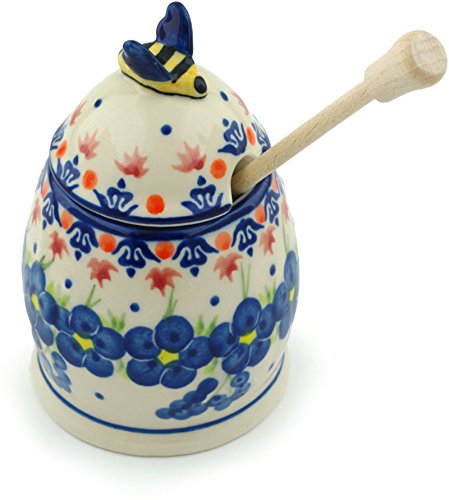 Studio : Boleslawiec Publisher : Boleslawiec Product Description Polish Pottery Honey Jar with Dipper 5-inch Passion Poppy Dimensions: 3½" wide, 3½" long, 5¼" high Capacity: 9oz Polmedia Polish Pottery Stoneware is: * Hand crafted and hand painted in Boleslawiec, Poland * Microwave safe, dishwasher safe, oven safe up to 480 F, freezer safe * Lead and cadmium free * Crack and chip resistant * Intended for everyday use, easy to clean * Highly collectable About Polish Pottery Polish pottery is known for its versatility in the kitchen and on the table. It is safe for use with food in the microwave, freezer, oven and dishwasher. Polish stoneware is resilient to abrasives making it durable and resistant to scratching or chipping. It distributes heat evenly for perfect baking and is also nonstick for easy clean-up, making it easy to care for. The bright patterns never fade, and are offered in thousands of variations to mix and match. It is this combination of function and beauty that makes Polish pottery so appealing. The pottery is fired in electric and gas kilns at temperatures exceeding 2200 degrees Fahrenheit. This results in a stoneware that is meant to resist aging and provide lasting beauty that stands the test of time. Polish stoneware is lead and cadmium free. Polish Pottery is hand crafted and hand painted in the Boleslawiec region of Poland. This region is famous for its naturally found white clay which artisans have used for centuries to craft this durable and beautiful stoneware. Each piece of pottery is carefully formed and painted by hand to ensure that exceptional attention to detail is paid to each piece. The most beautiful and intricate patterns are called UNIKAT patterns. These patterns bear the artist's signature. 0