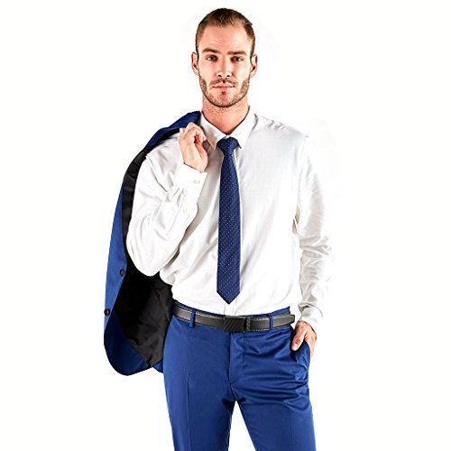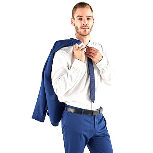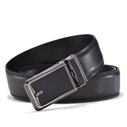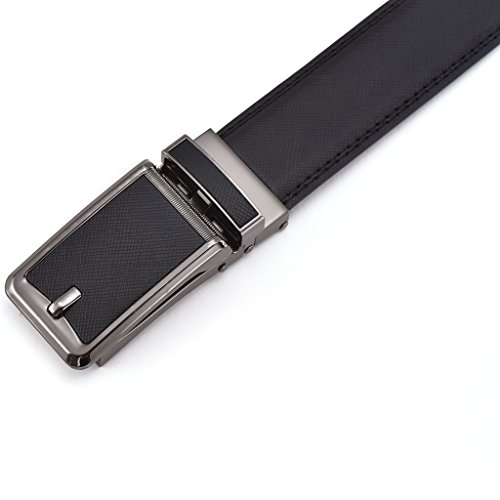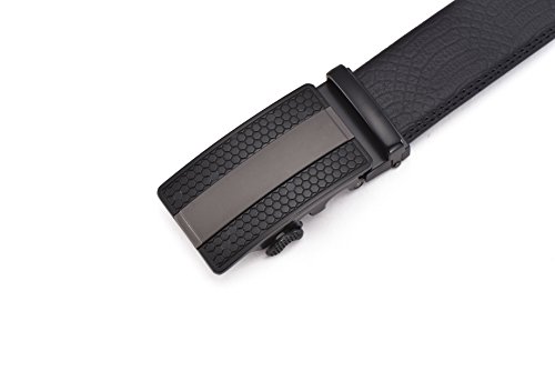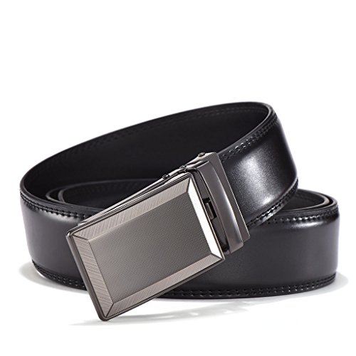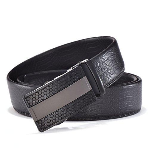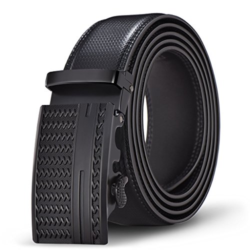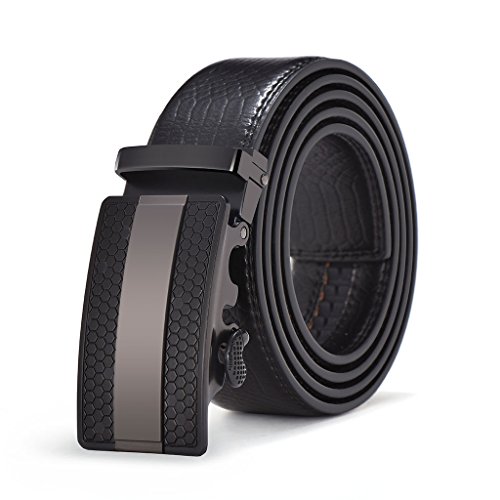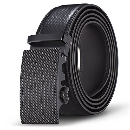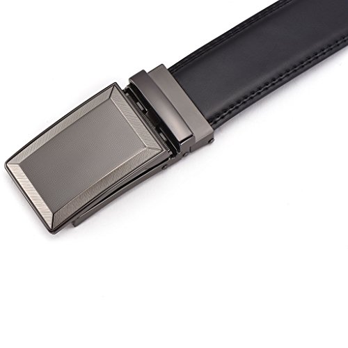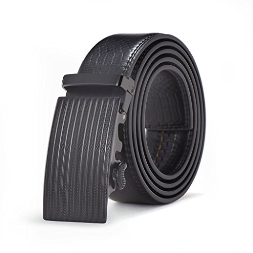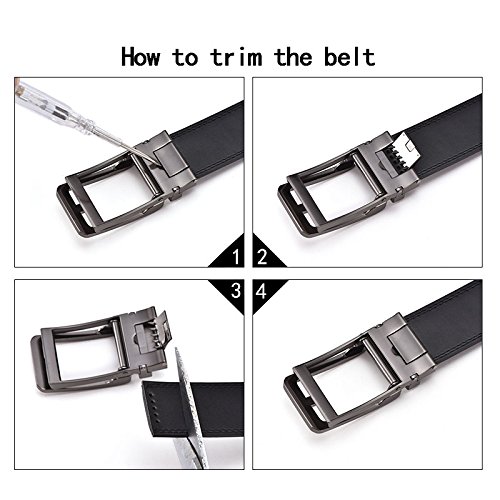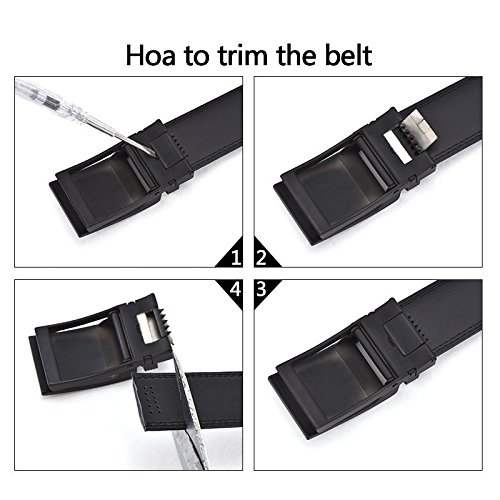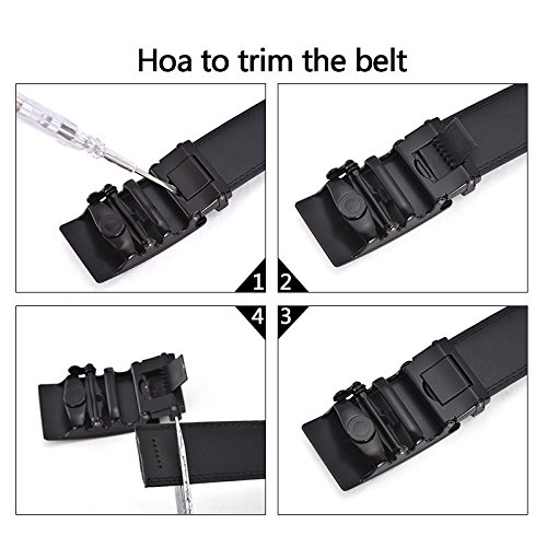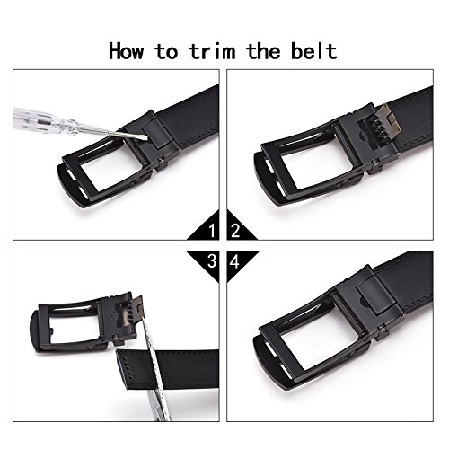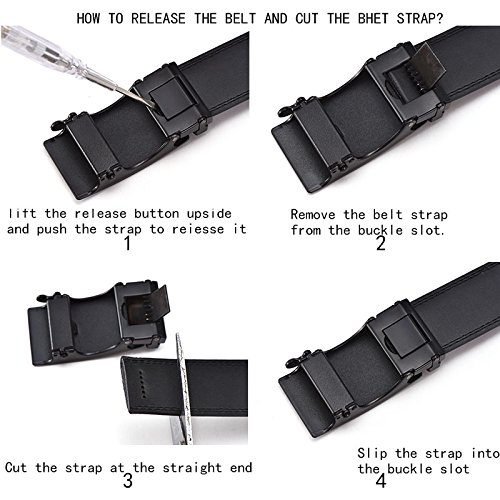 Belt Features: -High quailty: Sturdy, lightweight, scratch resistance buckles are made with Zinc Alloy to create a substance with greater strength and resistance to corrosion.With high quality leather material, durable buckle and sturdy stitching -Simple to use: Our easy to use buckle makes adjusting your belt effortless ,remove the belt, just press the small metal lever on the bottom of the buckle, and the belt slides out of the buckle. -Automatic buckle: You can trim the strap length by yourself to fit your size if the belt strap is too long for you. -Best Gift:It is the best gift to your friend, family, relatives or yourself.