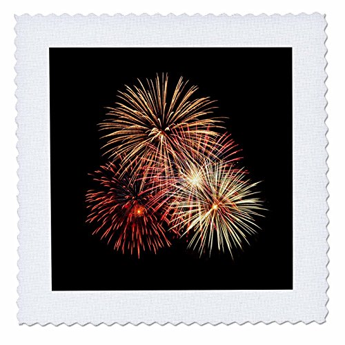3dRose Picture of Colorful Fireworks on Black Background - Quilt Square, 8 by 8-Inch (qs_201886_3)