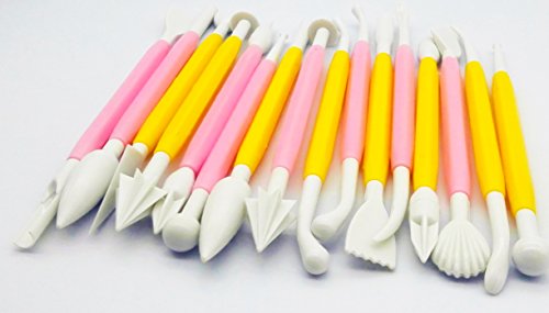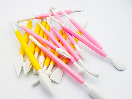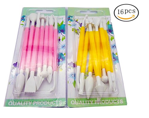 FF Elaine 16 Pcs Modeling Tools Fondant Tools Cake Decor Supplies For DIY Cake Decorating/Sculpting/Modeling Tools (Yellow Pink)