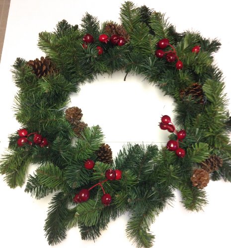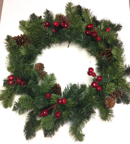 30" Green Christmas Wreath with pinecones and berries