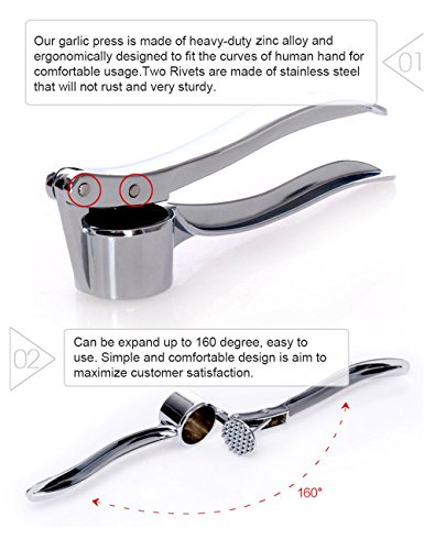 HOAEY Professional Garlic Press, Easy to Crush the Garlic Cloves & Ginger, Best Garlic Mincer for Chef, Silver