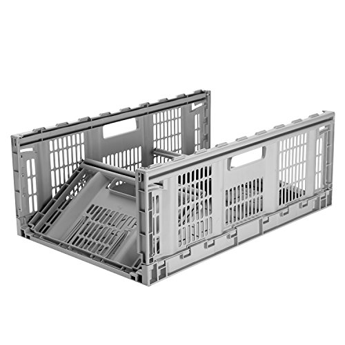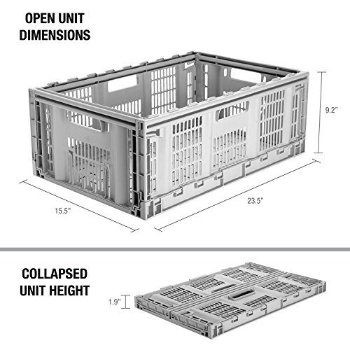 CleverMade CleverCrates Pro-Grade 46 Liter Collapsible Storage Bin/Container: Grated Wall Utility Basket/Tote, Grey