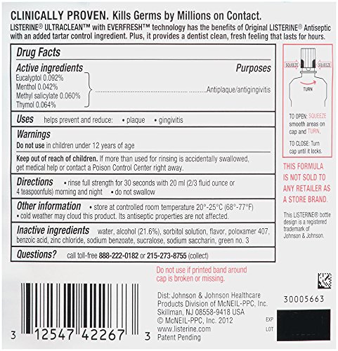 -. Title : Listerine Ultra Clean Antiseptic Mouthwash, Cool Mint, 33.8 fluid ounces