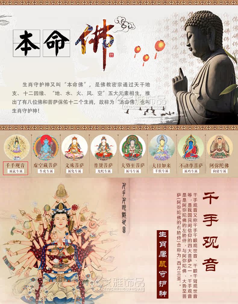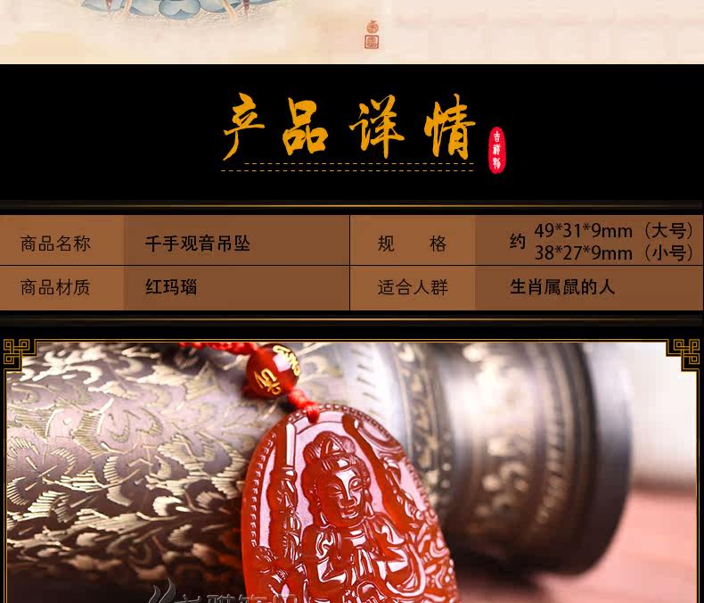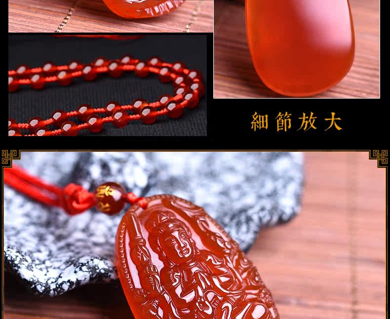 开光天然红玛瑙千手观音菩萨本命佛吊坠 生肖属鼠守护神男女项链