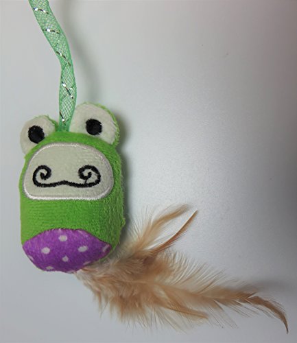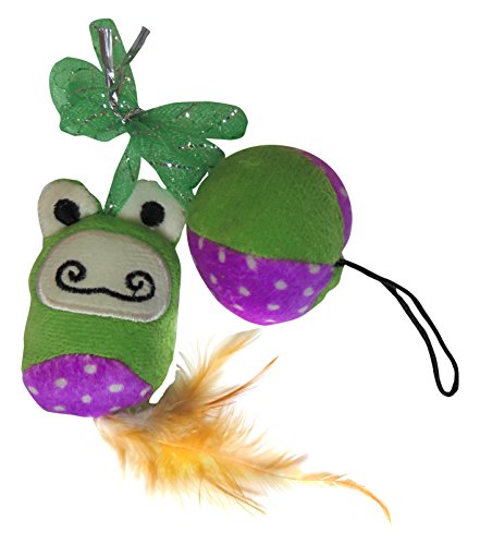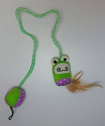 -. Feature : Interactive fabric frog and ball toy combo / Tons of interactive kitty fun / Made with soft fabric bungee material / Bright colors for visual stimulation / Cat friendly and feline-safe