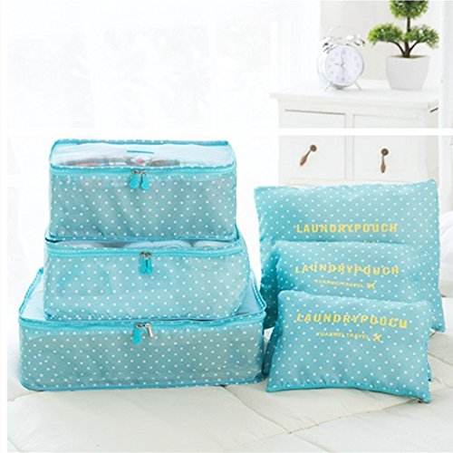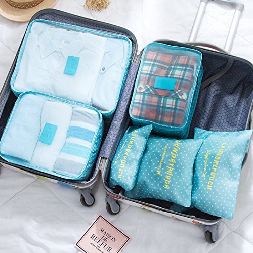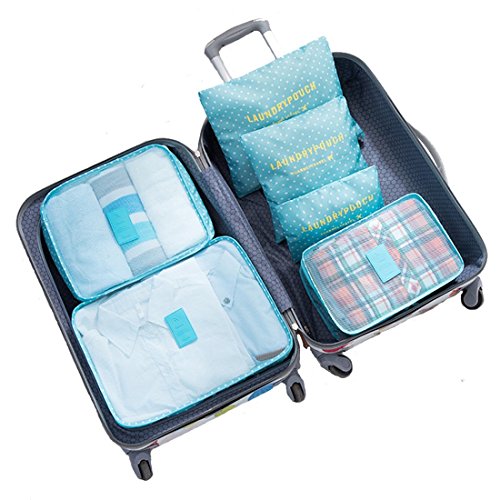 Auxeo Set of 6 Packing Cubes,Travel Luggage Packing Organizers Compression Pouches. (Blue)