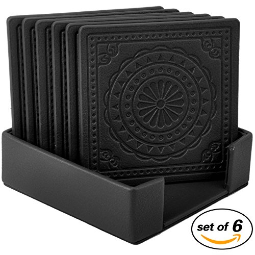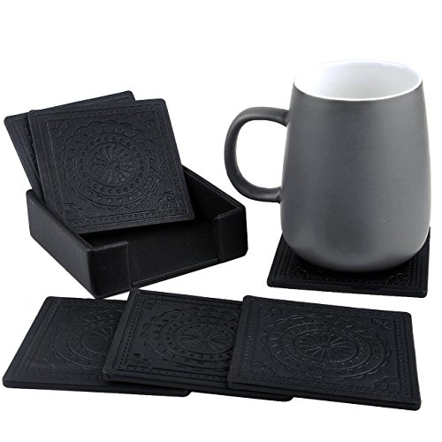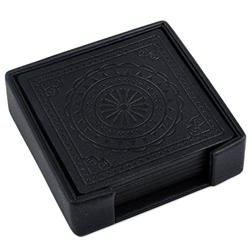 Product Description What kind of coasters do you want? Can be used in any dining/living room area, perk up your home, bar, coffee lounge, garden, patio, office, fit any type of cup/glass Works with all cold beverages,whisky, beers, cocktails, iced teas. also used to protect surface tops from hot tea or coffee mugs? Protect your Furniture, Tables, Desks,Counter-space and more from unwanted stains and condensation that drips from your beverages? Attractive and artistic to match your decor? This Faux Leather Coasters from SPSHENG can meet all the needs above,besides,it's not only can be used as cup mat but also can be used as platforms for your saltpepper grinders,with proper size and perfect weight,you may don't want to miss it. 0
