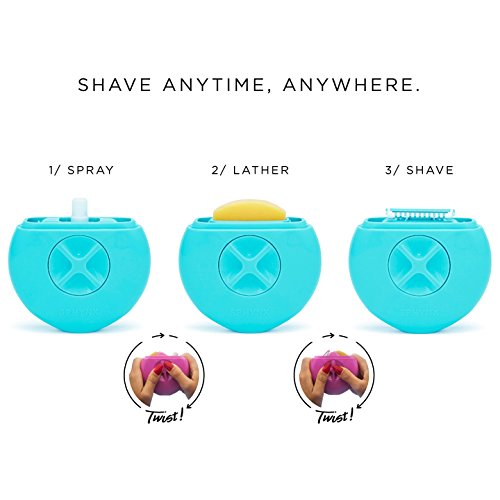 - THE 3-IN-1 TRAVEL RAZOR encloses a refillable water spritzer, a pre-shave moisturizing bar, and two individual razor blades.