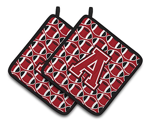 Caroline's Treasures Letter a football Red, black & White Pair of Pot Holders CJ1073-APTHD, 7.5HX7.5W, Multicolor