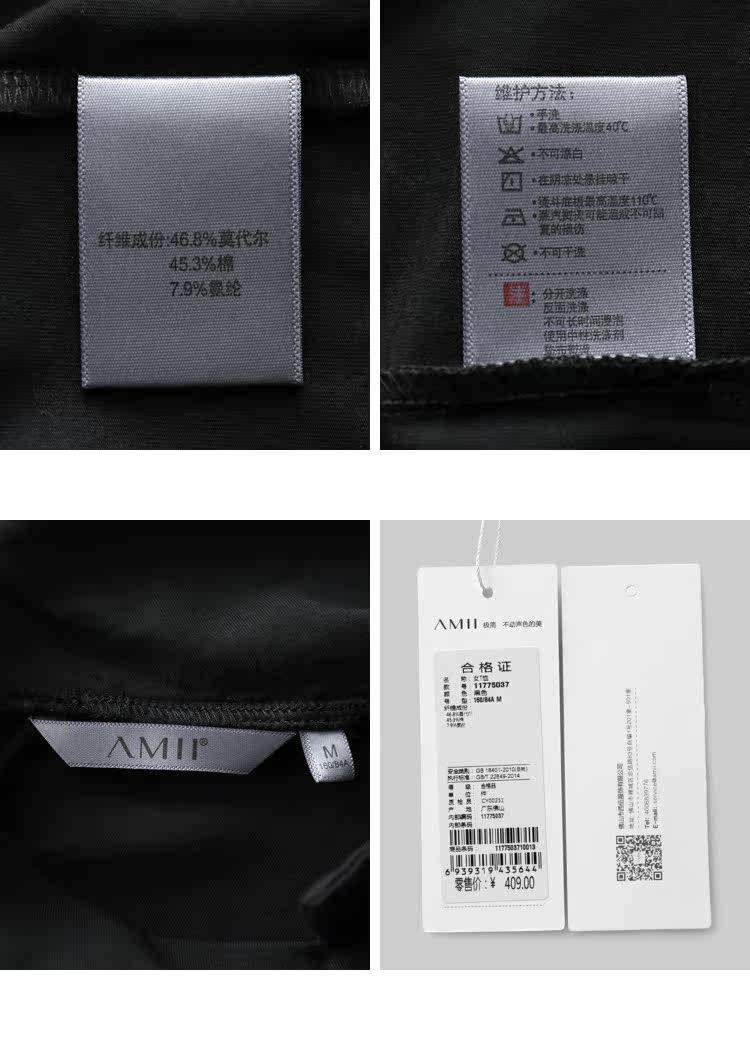 | 面料成分: | 米白:50.4%莫代尔,41.8%棉,7.8%氨纶 黑色、深花灰:46.8%莫代尔,45.3%棉,7.9%氨纶 |