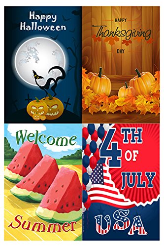 -. Title : Decorative Seasonal Garden Flags, Set of 10, For Outdoor, All Seasons & Holidays - 12X18in Yard/Lawn Flag, Double sided designs, 3X Layers Strong Material, Bonus 2 stoppers & 2 anti-wind clips