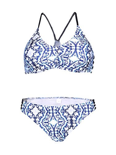 Title : Blooming Jelly Women's Racerback Print String Bikini Swimsuit Bathing Suit Blue Medium