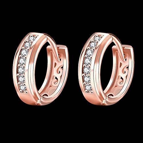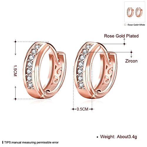 Hypoallergenic, 14K Rose Gold Plated, High Quality Plating & Polished Round CZ Hoop Earrings.