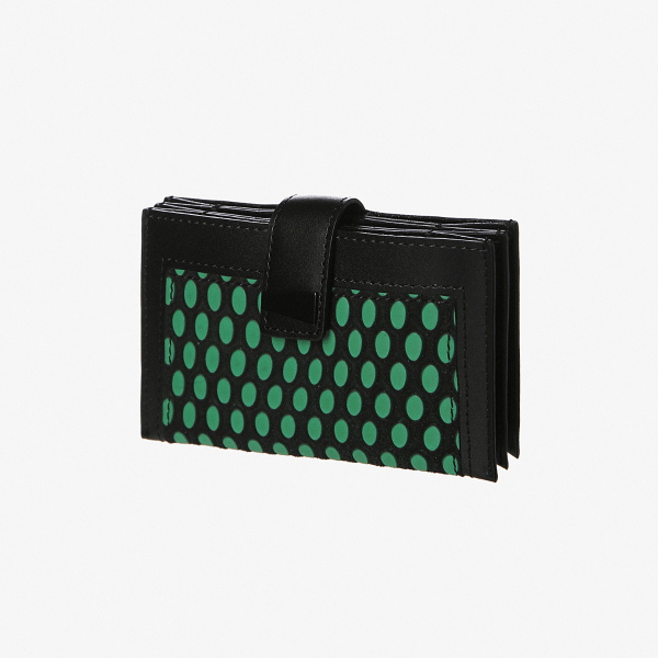 신규 아코디언 스냅 카드케이스 입니다. 카드 지갑으로 간단한 수납을 원하시는 고객에게 어필하기 좋습니다. 신규 칼라인 아테나 핑크와 비비드 그린의 상큼한 유색과 블랙 테두리 가죽띠를 콤비로 사용하여 칼라의 균형을 잡아 주었습니다. 신규 가죽인 피고 그린은 이태리 고급 소가죽으로 올오버로 사용하여 군더더기 없이 깔끔하게 연출 하였습니다.