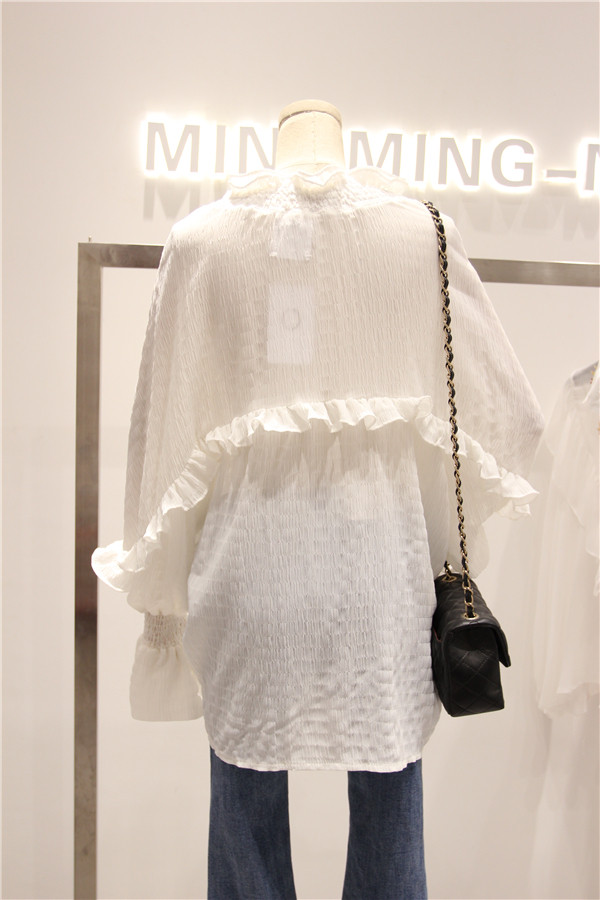 然后胸部位置连着肩部还做了荷叶边的拼接,