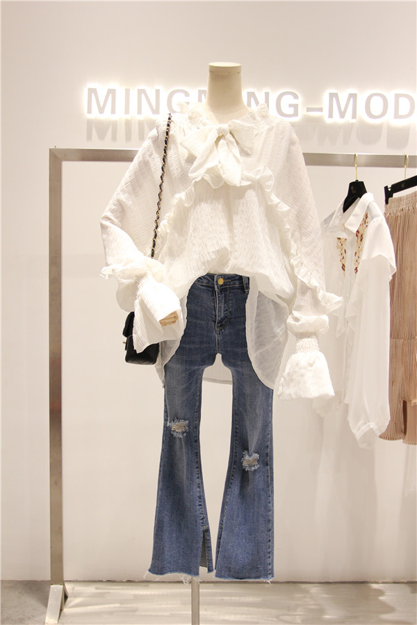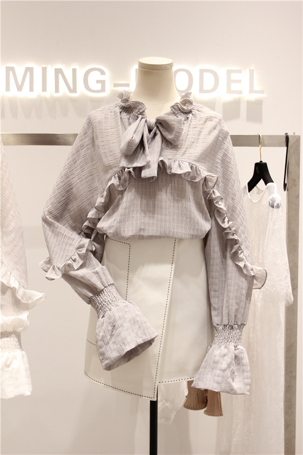 这个型我很喜欢,松紧褶皱收口的喇叭袖,袖口围