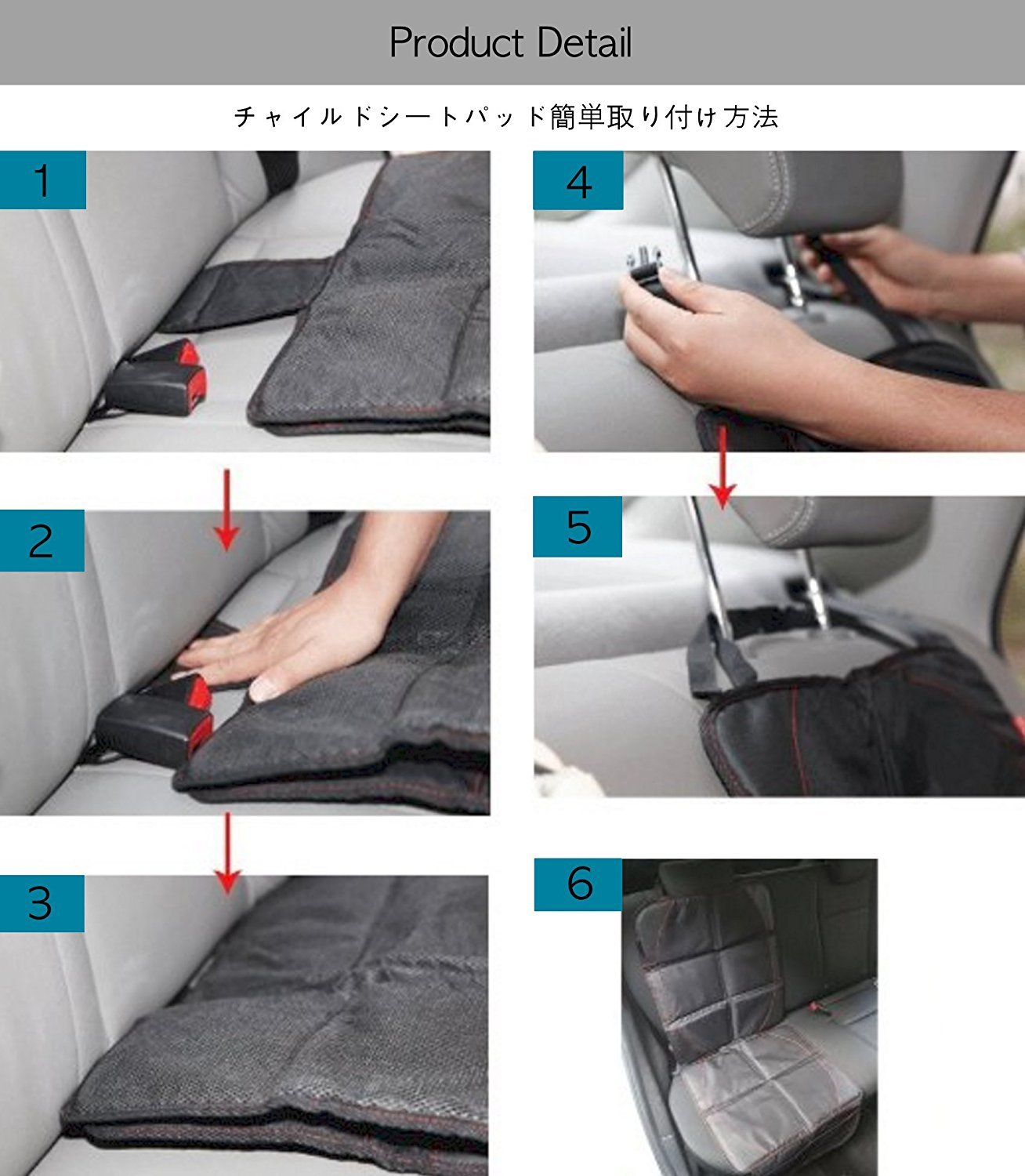 A mat that protects the seat surface of the rear seat from scratches and dents, etc. by laying under the child seat when installing it in the car.