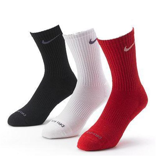 NIKE MEN'S DRI-FIT CUSHIONED CREW SOCKS - 3 PACK (RED/WHITE/BLACK, SHOE SIZE: 8-12)