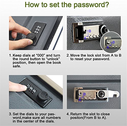 Book Safe with Combination Lock - Jssmst Home Dictionary Diversion Metal Safe Lock Box 2017, Black Small/Full Size, SM-BS0401S, black small