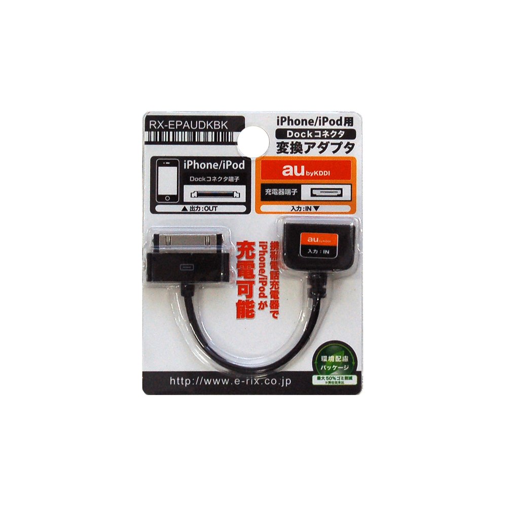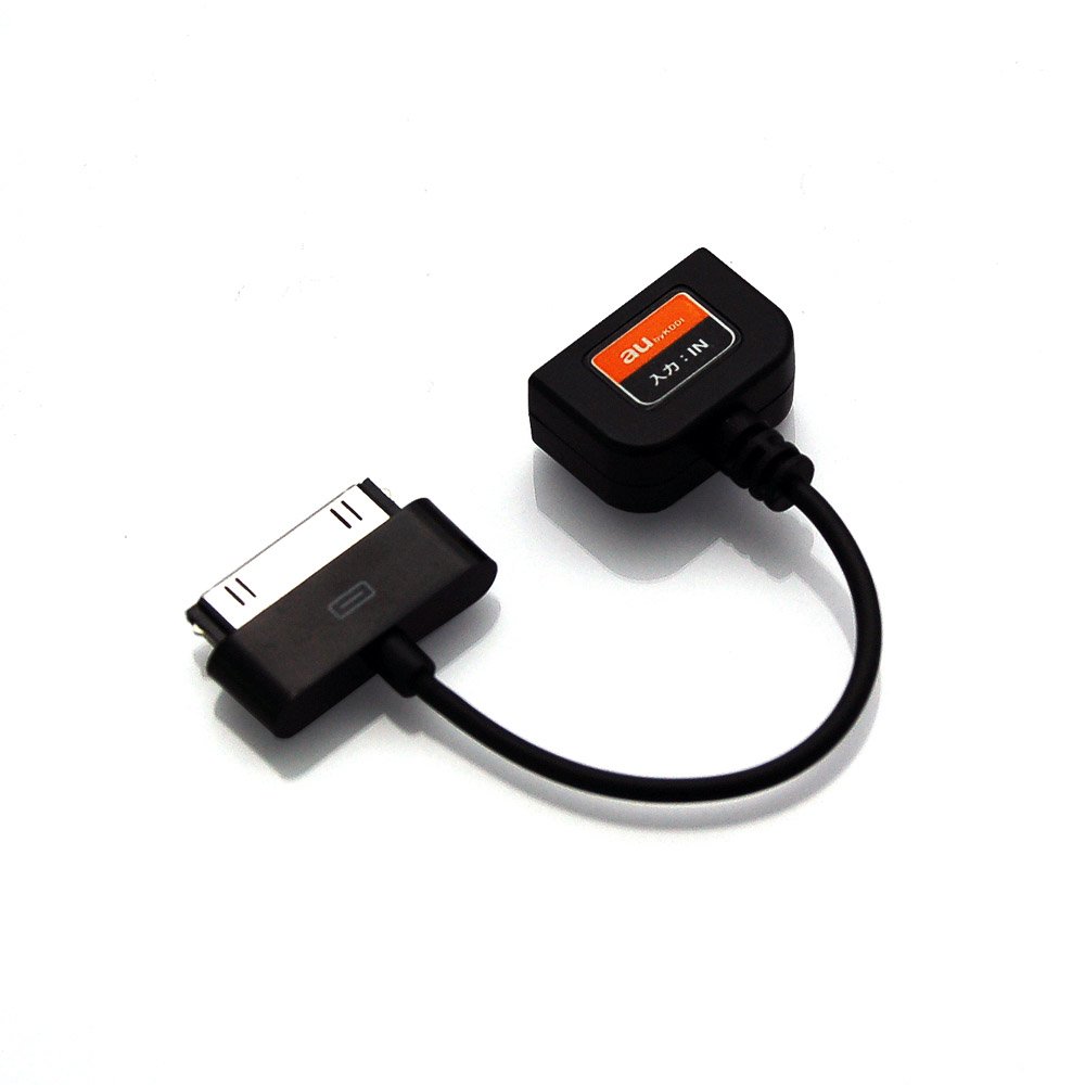 Adapter for converting au cell phone charger to iPhone & iPod Dock connector terminal.