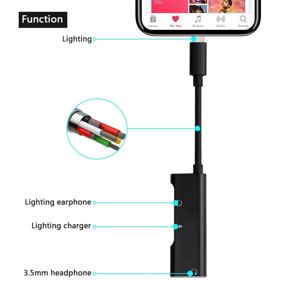 Model Number:3 in1 Dual For Lightning AUX Adaptador