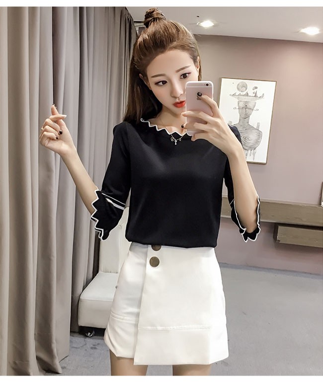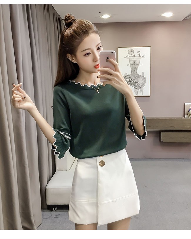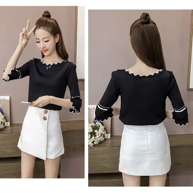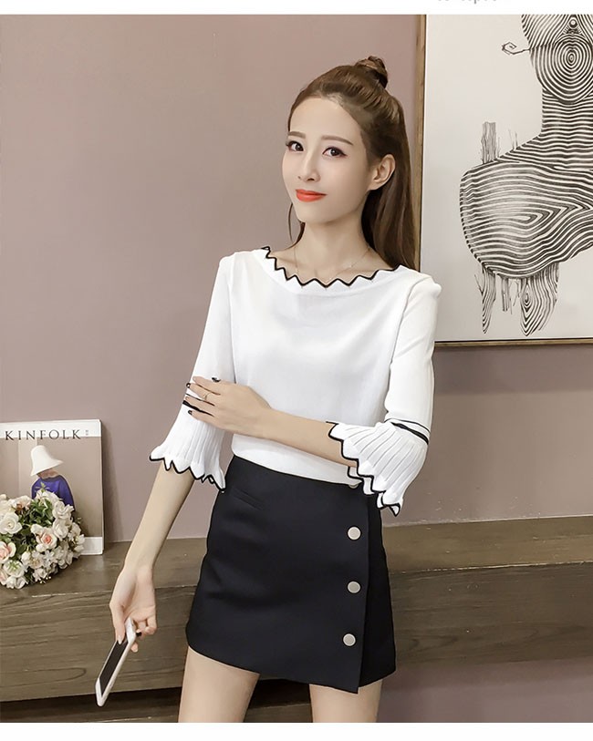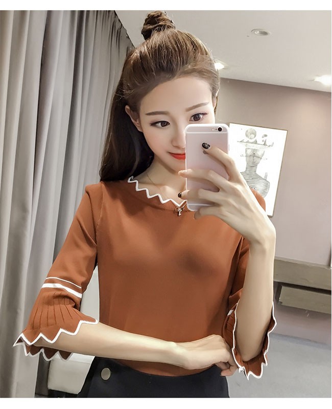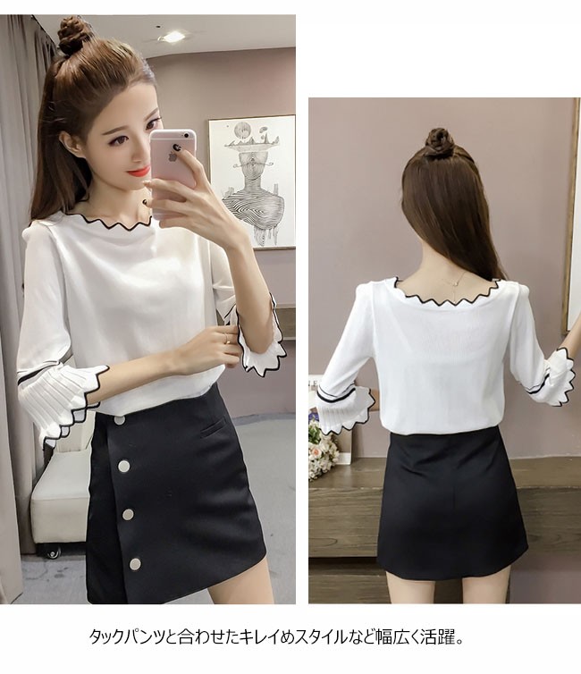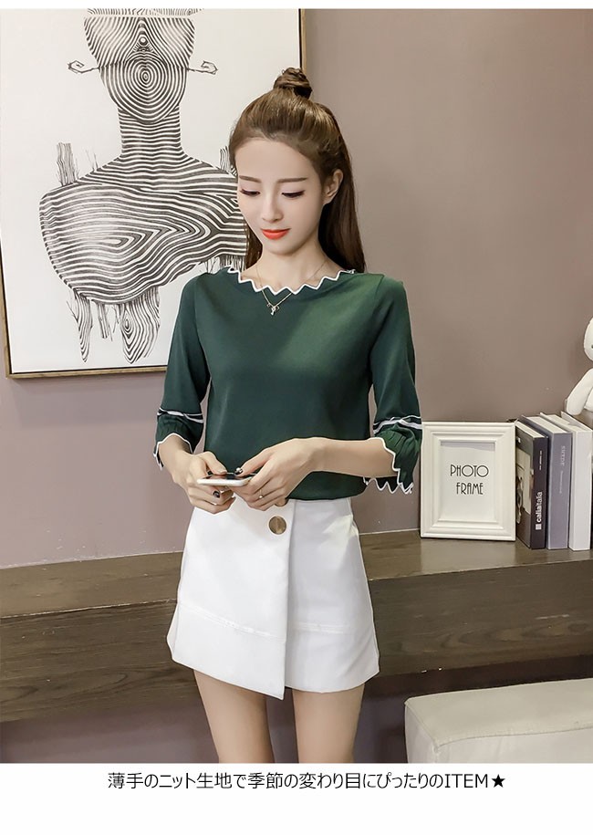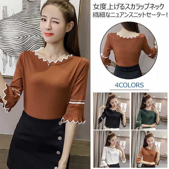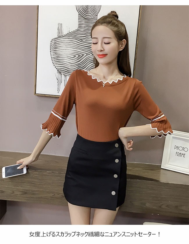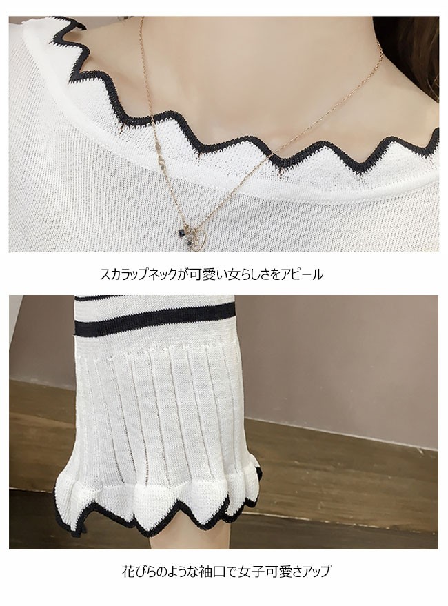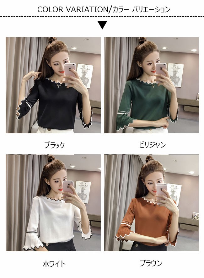 | 商品名 | ニットセーター ニットブラウス インナーニット レディース 無地 ベルスリーブ スカラップネック ショート丈 可愛い 薄手 2017秋新作 |