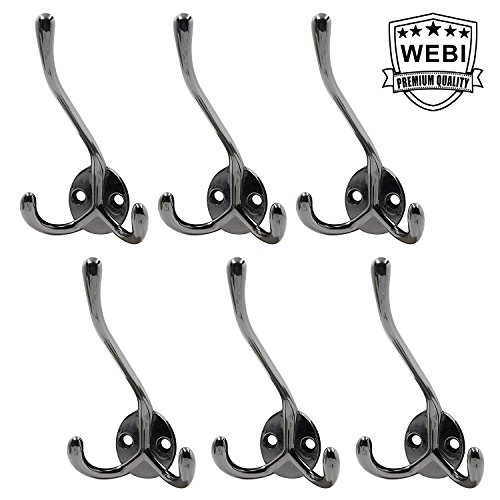 1.Packs of 6 - WEBI COAT HAT TOWEL HOOK : Premium Zinc Hook, Chrome Plating with 3 scroll prongs. BUY WITH CONFIDENCE, 100% MONEY BACK SATISFACTION GUARANTEE!!!