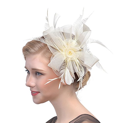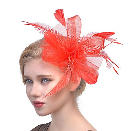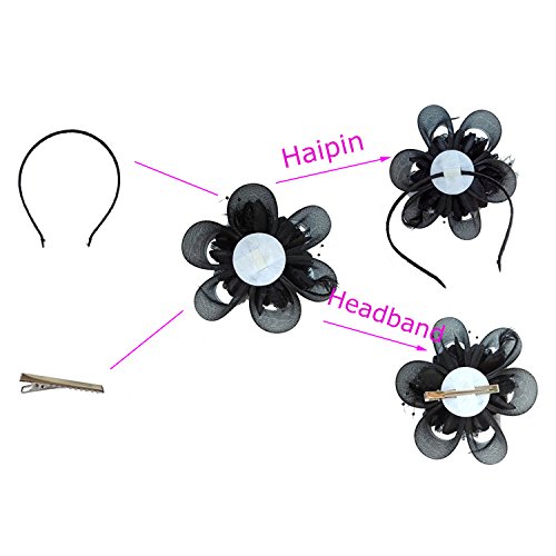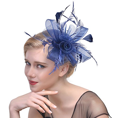 Womens Sinamay Fascinator Hair Clip Top Hat,Flower Cocktail Tea Party Derby Headwear,Veil Weddi...
