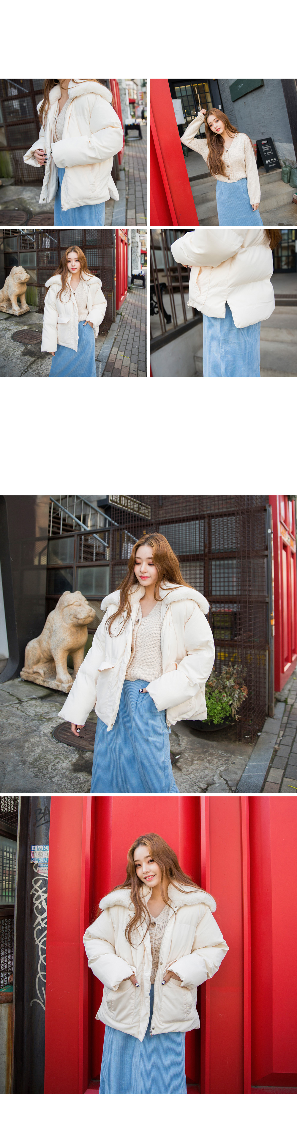 "소프트 파우더 패딩" 퍼로 마무리한 넥라인 카라가 포인트! 다양한 분위기로 코디하기 좋은 패딩인데요, 집업스타일에 스냅버튼이 있어 이중 클로징 할 수 있어 더욱 보온성을 높이고 넥라인 퍼가 어깨 끝까지 덮어주고 있어서 귀여우면서 따뜻함까지 주고있어요 빵빵한 충전재가 더해져 포근함은 배로~ 힙까지 살짝 덮어주는 기장감이구요 도톰한 두께감이 한겨울까지 더욱 따뜻하게 만들어줄꺼에요 무난한 코디도 가능하도록 아이보리, 베이지 컬러 2가지 준비했어요 굿 초이스하세요^^ color 아이보리,베이지 fabric 겉:폴리100%,안:폴리100%,충전재:솜100%,배색:폴리100% size FREE 어깨50 가슴58 소매통26 소매56 총장(앞)63 (뒤)68 (재는 위치 및 재봉과정에 따라 오차가 있을 수 있습니다) ![]() ![]() ![]() ![]() ![]() ![]() |