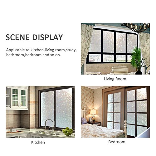 - APPLICATION: Decorative, privacy window film suitable for windows, doors, shower doors, bathroom, living room, kitchen room, dining room, bedroom, glass-door, office, meeting room, any cabinet, supermarket, storage, and furniture etc