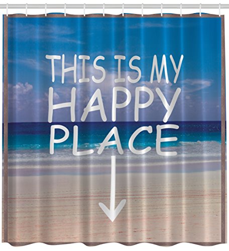 Beach Shower Curtain Nautical Decor by Ambesonne, Beach Scene in the Ocean Seashore Sand This Is My Happy Place Vacational Aquamarine Mildew Resistant Fabric Shower Curtain, Blue Navy Green Beige