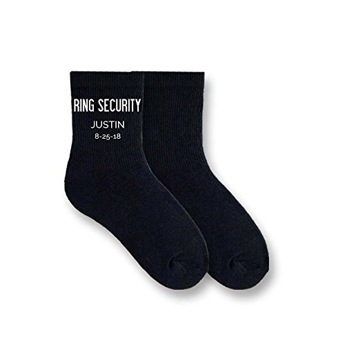 Binding : Apparel Product Description The perfect socks for the Ring Bearer, these wedding party socks are personalized with the wedding date on the outside of each sock and is a fun way to accessorize on the big day.? We use our patented digital printing process to print directly on the socks with this personalized design using eco-friendly apparel inks.? White ink is applied to print the date on our ribbed cotton half cushion socks. Please specify the wedding date when customizing the design. Click on "Customize Now" to personalize the text and be sure to double check the spelling and confirm the dates before submitting your order as Sockprints is not responsible for typo's on the designs submitted to us. Please note the colors on the screen may be brighter than what will be printed on the soft, porous surface of the socks. 0