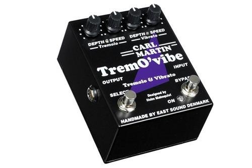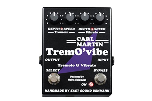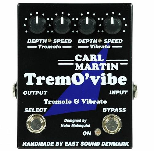 Studio : Carl Martin Publisher : Carl Martin Binding : Electronics Product Description The Carl Martin TremO'vibe is an analog "two in one" effect pedal consisting of a tremolo and a real vibrato, both with independent sets of speed and depth controls. Now with DC input, no more AC cord. The tremolo effect works like a change in volume. The vibrato, which works as a change in tone (pitch modulation), is carefully designed to imitate the sound of a real tube vibrato. Featuring two switches, The "on" switch allows you to engage or bypass the unit. The "select" switch allows you to switch between Tremolo and Vibrato. The Carl Martin TremO'vibe is an excellent choice for Guitar, Bass, Keyboard, or any other electronic instrument, that requires the highest sonic clarity, maximum dynamic range and noise free performance. Can be used with any 9V DC 200mA power supply, center negative. No battery operation. 0