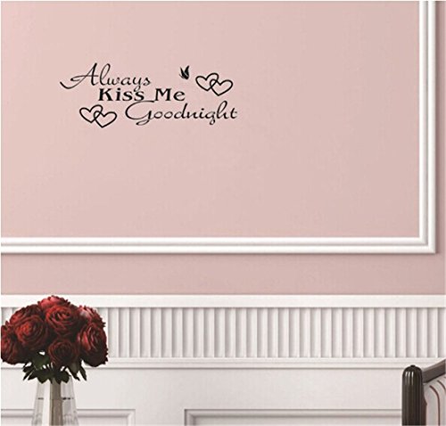 -. Brand : Gu Angqi -. Color : As picture -. EAN : 6011879214881 -. Feature : Material: PVC / Size:16.3*10.2inch / Easy to install and remove / A beautiful wall art wall decal for your home or office / High quality and it is easy for using and cleaning -. Label : GU Angqi -. Manufacturer : GU Angqi -. MPN : 21 -. NumberOfItems : 17 -. PartNumber : 21 -. ProductGroup : Home Improvement -. ProductTypeName : BUILDING_MATERIAL -. Publisher : GU Angqi -. Size : As description -. Studio : GU Angqi -. Title : GUAngqi Wall Sticker ALWAYS KISS ME GOODNIGHT LOVE Art Decal Room Decor Mural