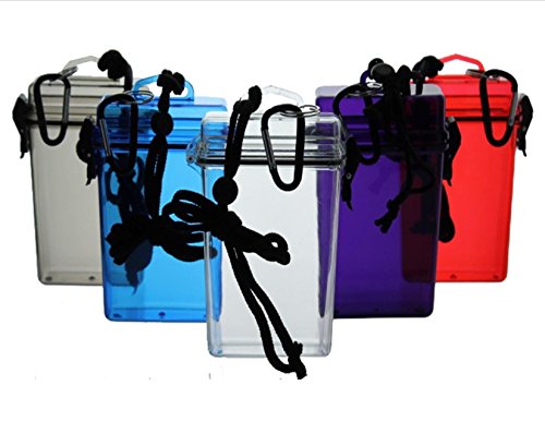 Blue Waterproof Travel Adventure Box | Hardplastic | Translucent Color | Money / Credit & Cruise Ship Cards | ID | Keys | Cosmetics | Cigarettes | Carabiner...
