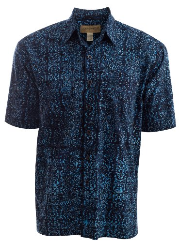 -. Feature : HAND P.R.INTED BATIK DESIGN - Each shirt is individually P.R.Inted by hand with batik stamps in a repeating pattern to produce exclusive "one of a kind" product where no shirt is exactly the same as any other. / NATURALLY PRE-SHRUNK FABRIC - High quality fabric that is both fade resistant and shrink resistant to ensure a long lasting and comfortable shirt. This is achieved through the natural batik process. No chemicals are used. / SHORT SLEEVE - Lightweight tropical button-down short sleeve Hawaiian style summer shirt. / STRAIGHT BOTTOM HEM - with side splits designed to be comfortable when worn untucked or tucked in. / LOGO BUTTONS - including exclusive Johari West monogrammed buttons.