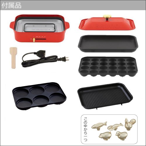 【부속품】뚜껑×1,평평함등 플레이트×1,타코야끼 플레이트×1,멀티 플레이트, 그릴 플레이트×1,데코레이션 노브,목제 스파《추라》×1