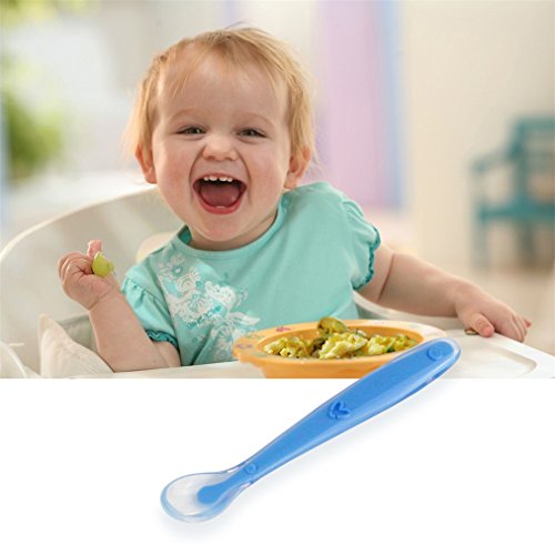 Baby Silicone Spoons,Amytalk 4Pcs Feeding Spoons Set with BPA Free Soft Silicone (4 Pcs of Blue)
