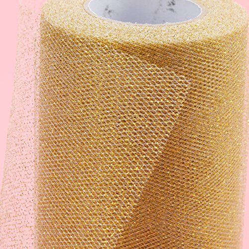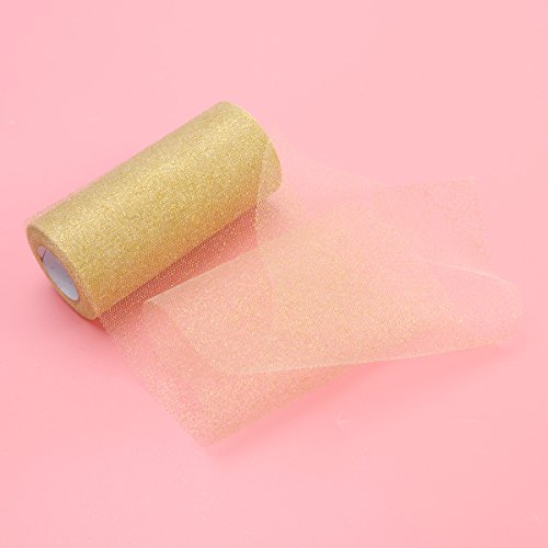 ULTNICE Glitter Tulle Rolls Sparkle Tulle Ribbon Roll Tulle Spool Material 6 Inch Gold